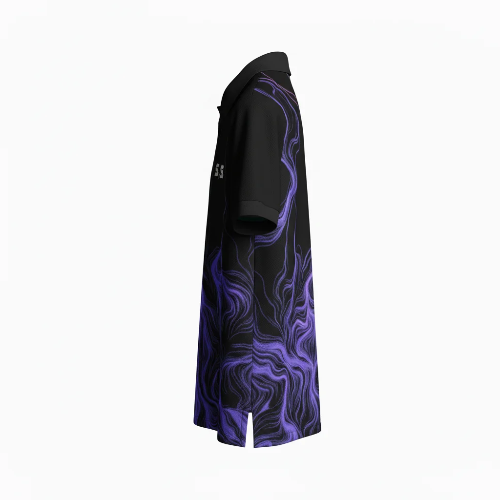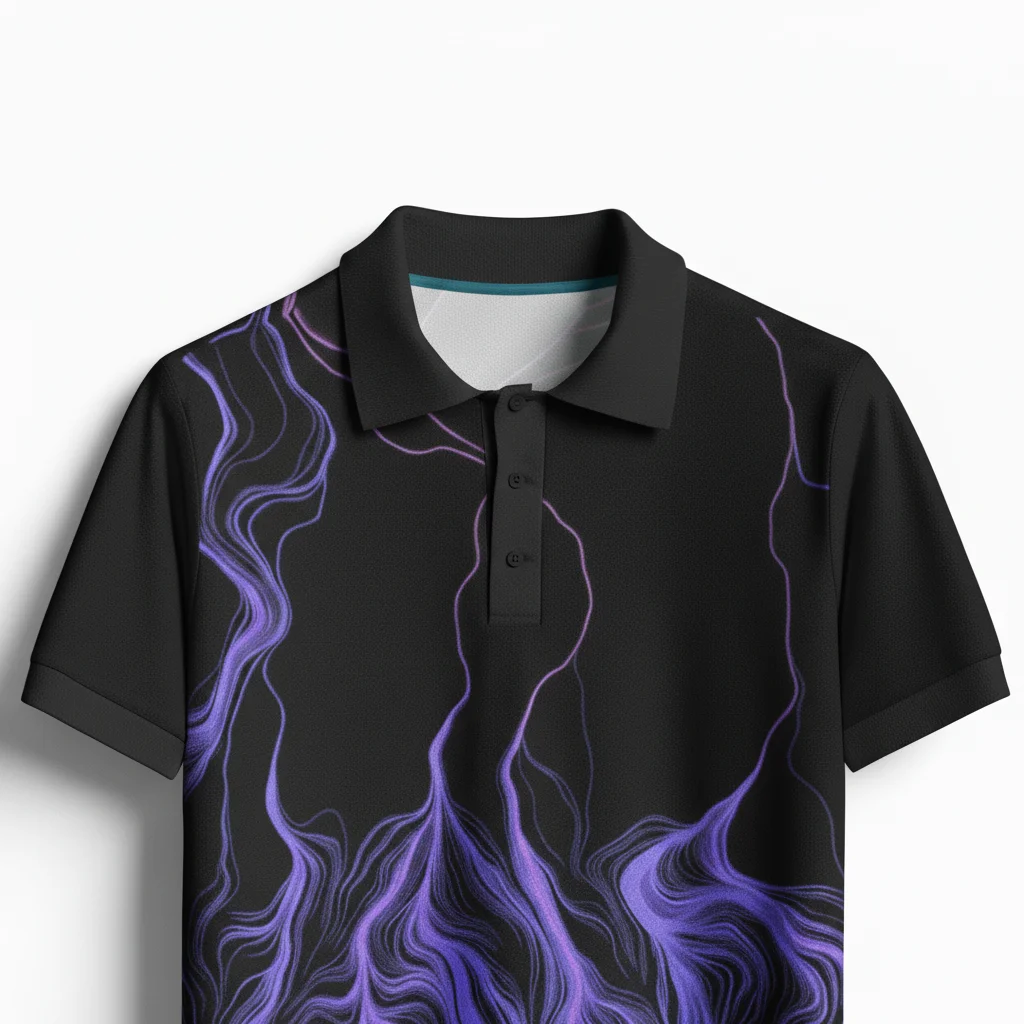 Elevate your athletic performance with our Black and Purple Lightning Pattern Sports Polo. Engineered for both style and functionality, this polo features a striking electric purple lightning bolt design against a sleek black background. Crafted from premium moisture-wicking, breathable fabric, it ensures maximum comfort during high-intensity training or casual team events. The reinforced collar and four-way stretch technology provide a perfect fit and long-lasting durability for athletes of all levels